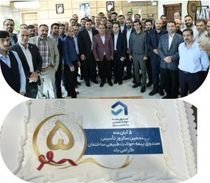 مراسم پنجمین سالگرد تأسیس صندوق بیمه حوادث طبیعی ساختمان با حضور دکتر سلامی، مدیرعامل صندوق، اعضای هیئت عامل و جمعی از کارکنان در فضایی صمیمی برگزار شد.